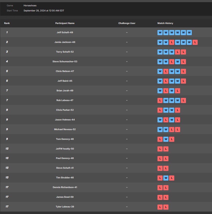| 2024 Tourney | Jeff Schaf (top winners) |